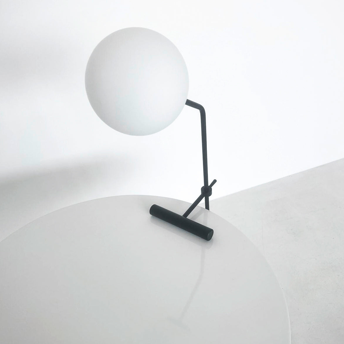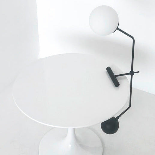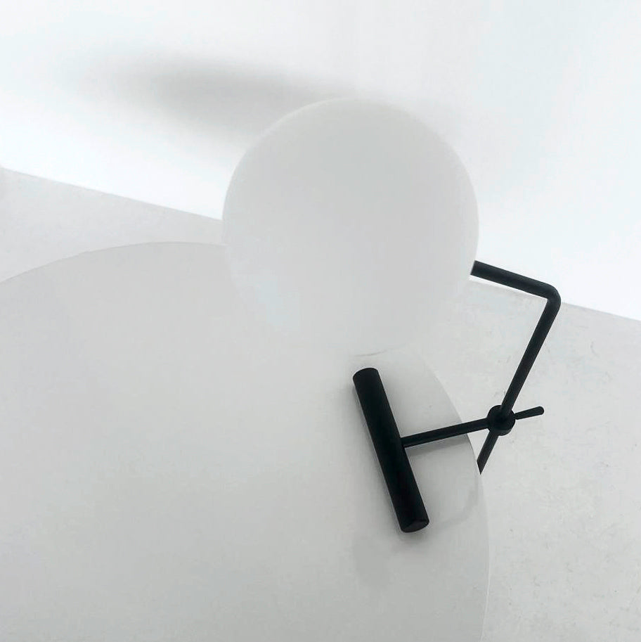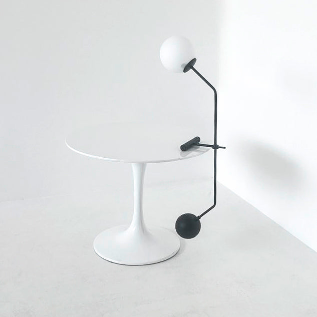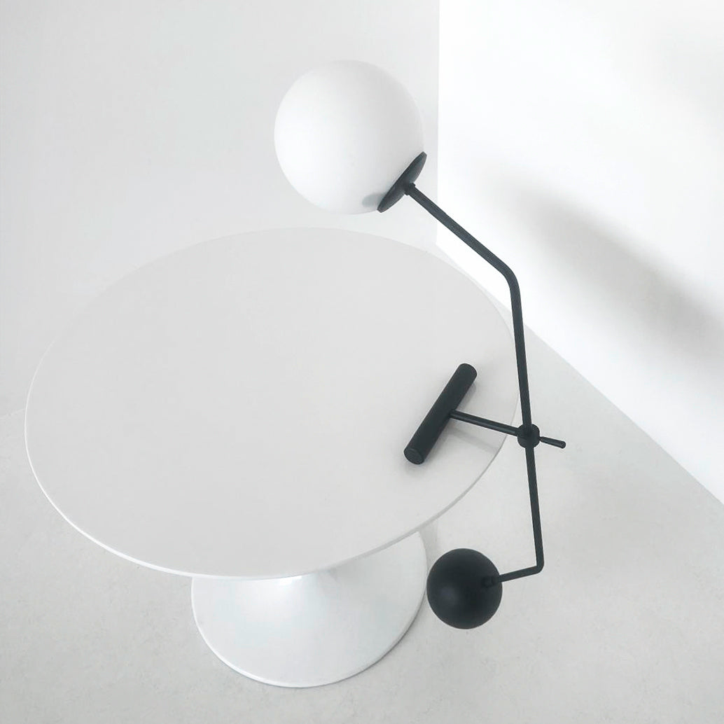 Materiali di pregio - Sfera in vetro opalino, struttura in ottone verniciato nero e contrappeso in ottone massiccio: un mix raffinato per un’estetica contemporanea ed equilibrata.