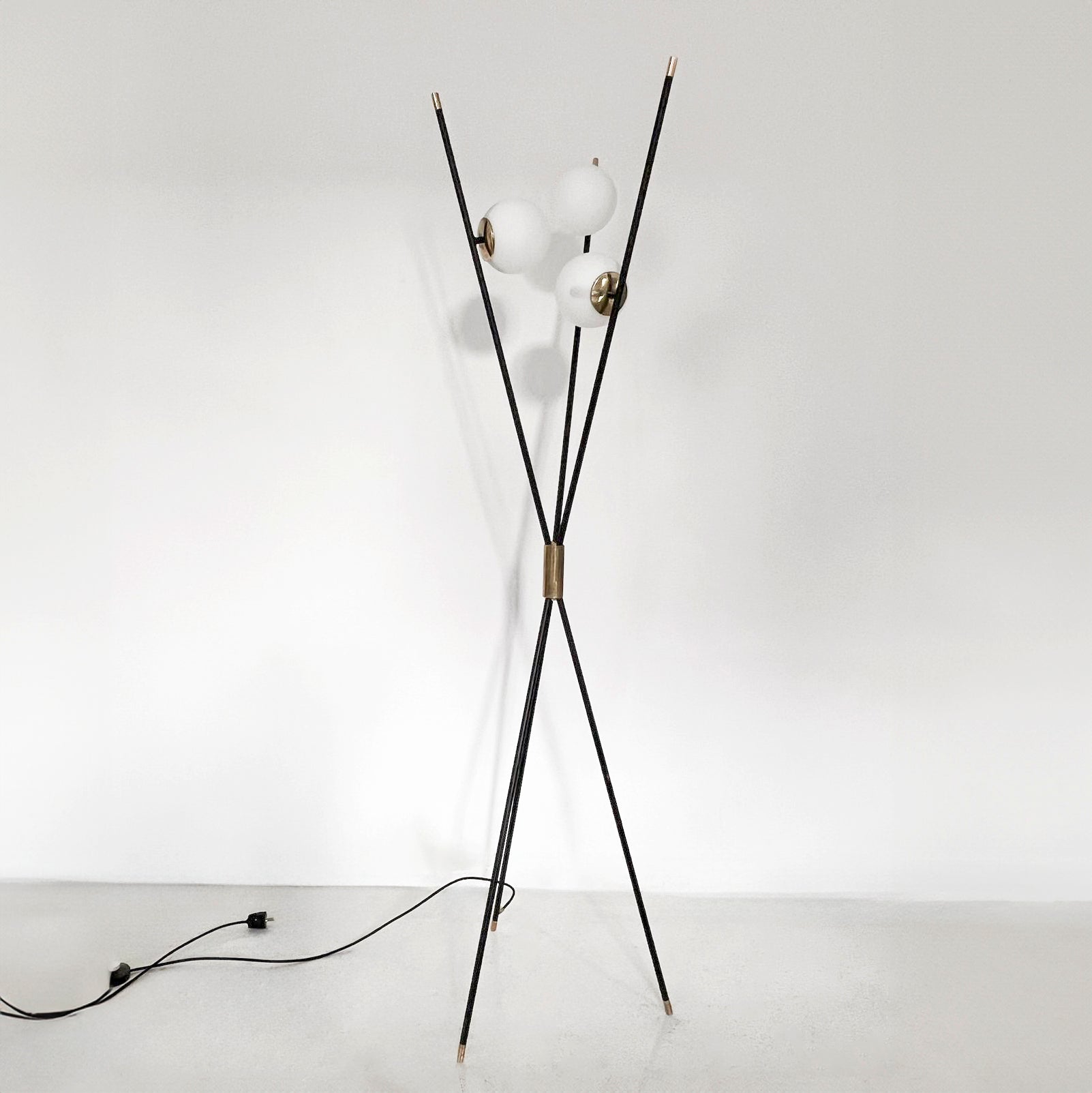 Con linee pulite e una silhouette elegante, la lampada presenta tre gambe sottili in ottone e uno snodo centrale per il massimo equilibrio. Si adatta perfettamente a spazi piccoli e grandi, senza appesantire o occupare spazio inutile. Arreda con stile anche gli ambienti più compatti, lasciando libertà creativa senza compromessi.